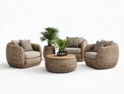 Este conjunto de muebles pertenece a la categoría Conjunto de muebles de jardín y está diseñado para crear un espacio cómodo de descanso en terrazas, patios o jardines. El conjunto incluye tres sillones y una mesa central, formando una zona acogedora para reuniones al aire libre o momentos de relajación. El estilo natural combina fácilmente con diferentes ambientes exteriores.